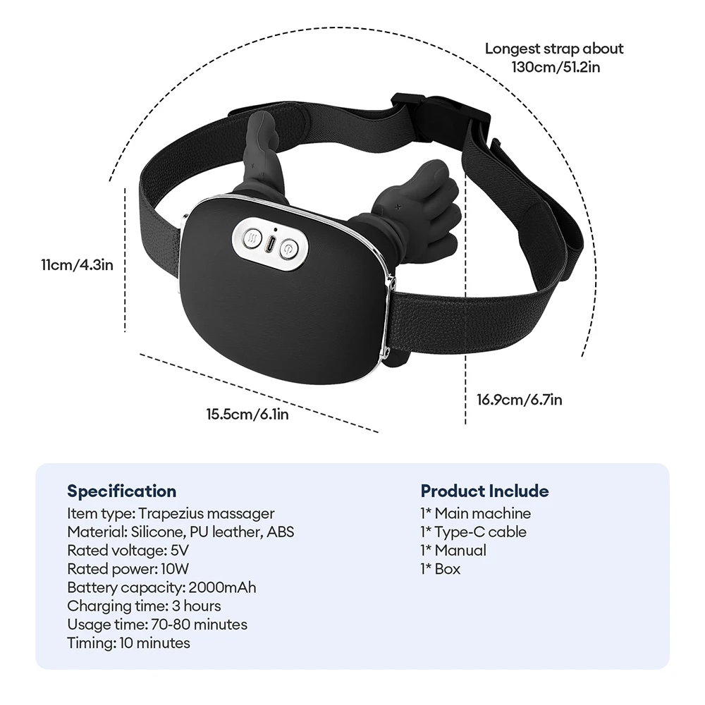 - Upgrade lengthen & widen finger massage. Scientific zoning, the massage heads are distributed according to the entire neck point to achieve full cervical coverage and relax in place at one time. Top eight fingers, knead the neck. Bottom thumb, lift & press the trapezius muscle.