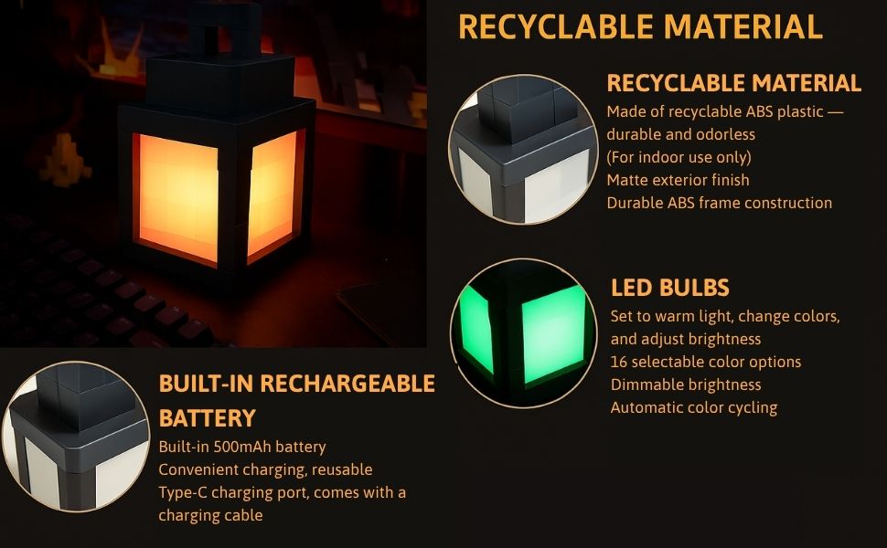 - Portable Night Light: This decorative light is made of high-quality ABS and measures 7 inches x 5 inches x 4 inches. It can be converted into a bedside lamp, handheld lantern, or wall-mounted light fixture. It is suitable for bedrooms, children's rooms, game rooms, camping, and travel.