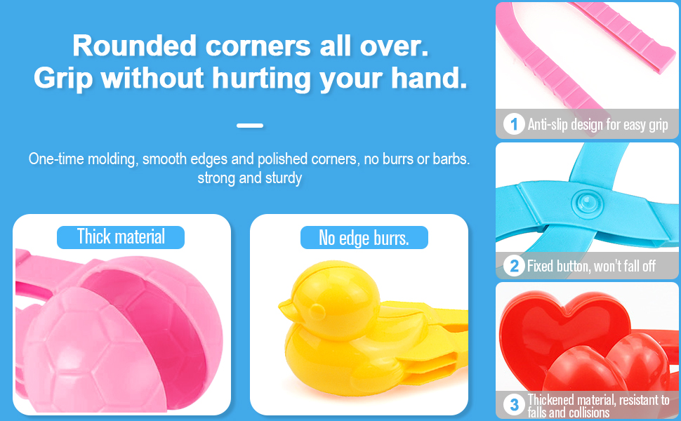 Just scoop up the snow and press down the handle to make a cute snowball! This Snowball Maker is made of tough high-impact material which is more durable and sturdy.