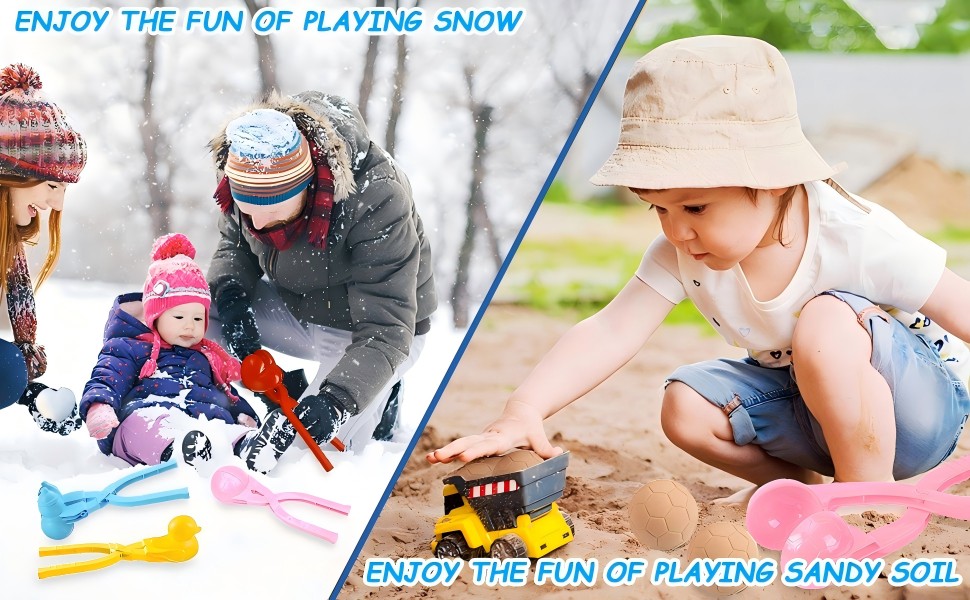 Comes with a long handle. Protect your hands from getting cold and wet while forming your arsenal of snowballs. No more snowballs made by hand! We offer many different-shaped snowball makers! Let's have a snowball fight with your friends and families in this winter!